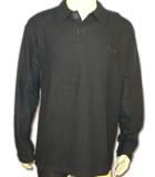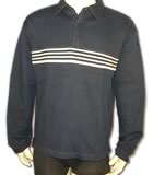 polo long sleeve bicolor. Self fabric 2 pcs band color on neck. Self fabric rugby placket with 3 buttons. 1x1 rib yarn dyed panel on chest. Single top stitch on collar, shoulder, front panel and sleeve end. 1x1 lycra rib at sleeve end. side slit with row edge. hem 2 needle on body low.