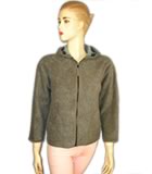 ladies sweat shirt raglan longs sleeve. truck neck. full open nylon zipper at front. collar self fabric one needle top stitch on raglan seam sleeve and body low