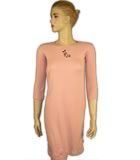 Dress Long sleeves with self fabrics binding on neck. Cut and sewn at waist with plating on front/back. Tab label at night left side seam. Single top stitch on waist line and binding. Hem 2