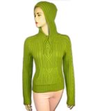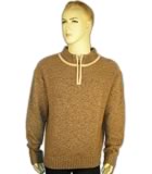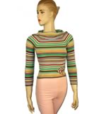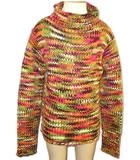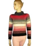 Turtle neck pullover long sleeves. Mixed colored striped on body and sleeves. Rib at neck, sleeve and body low.